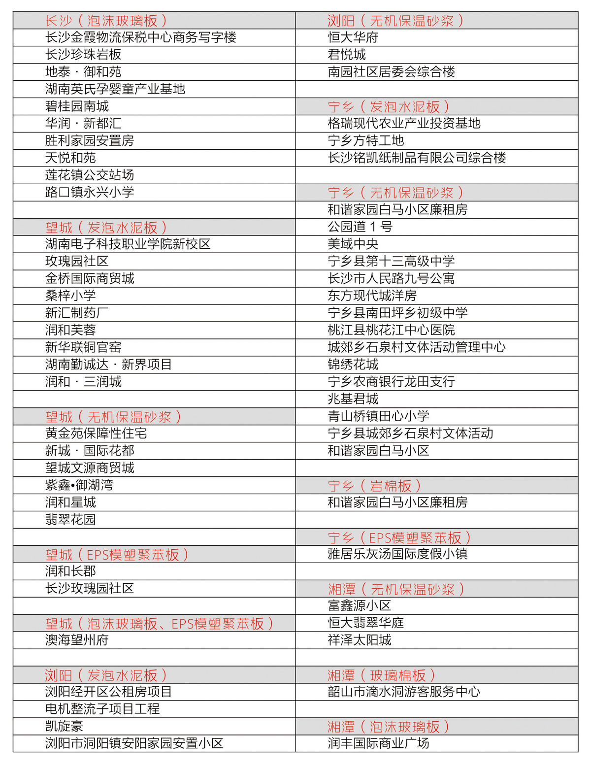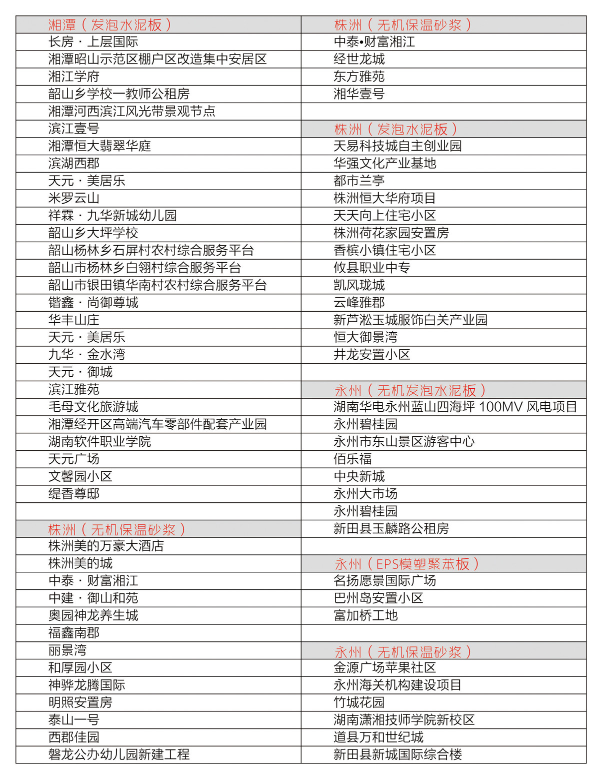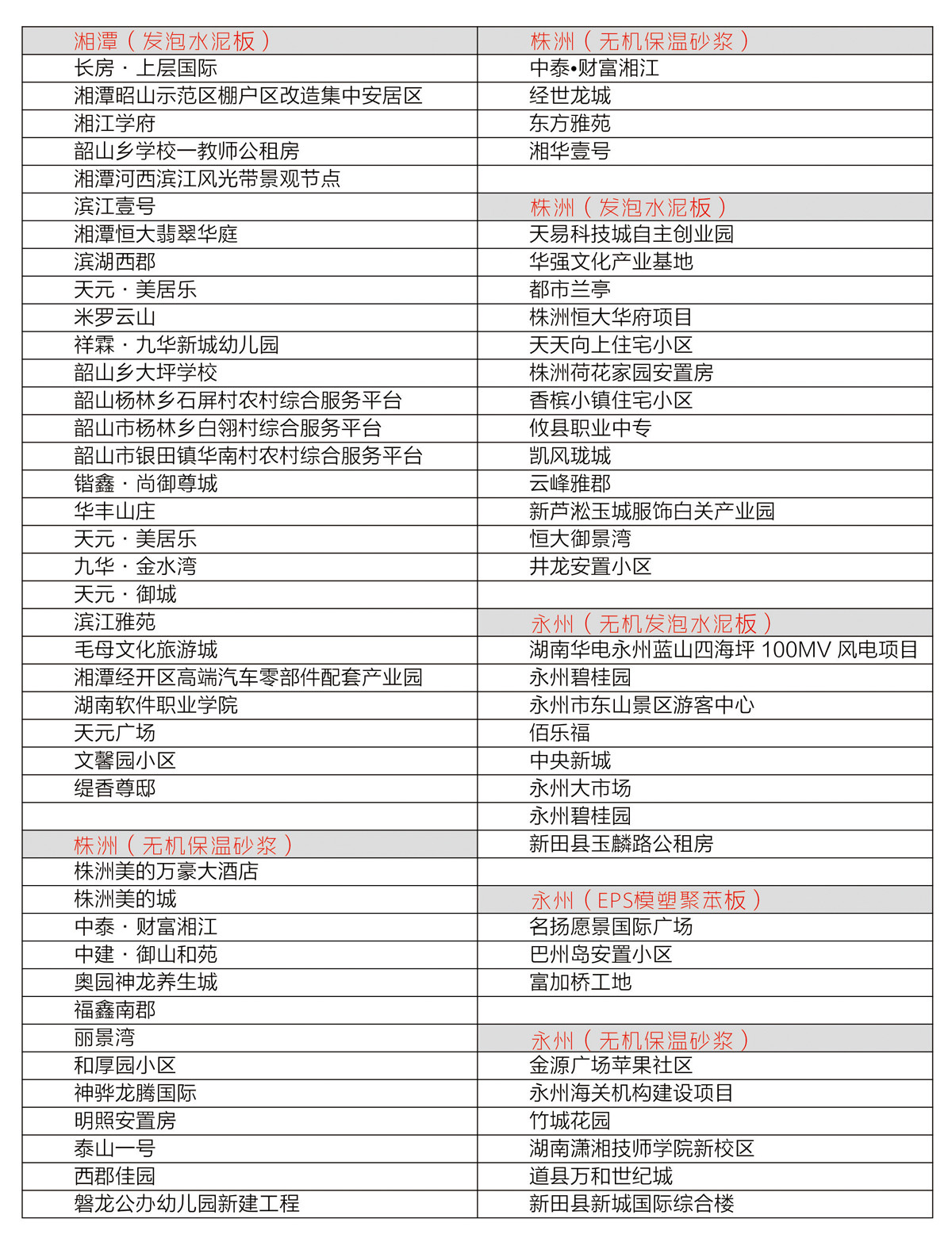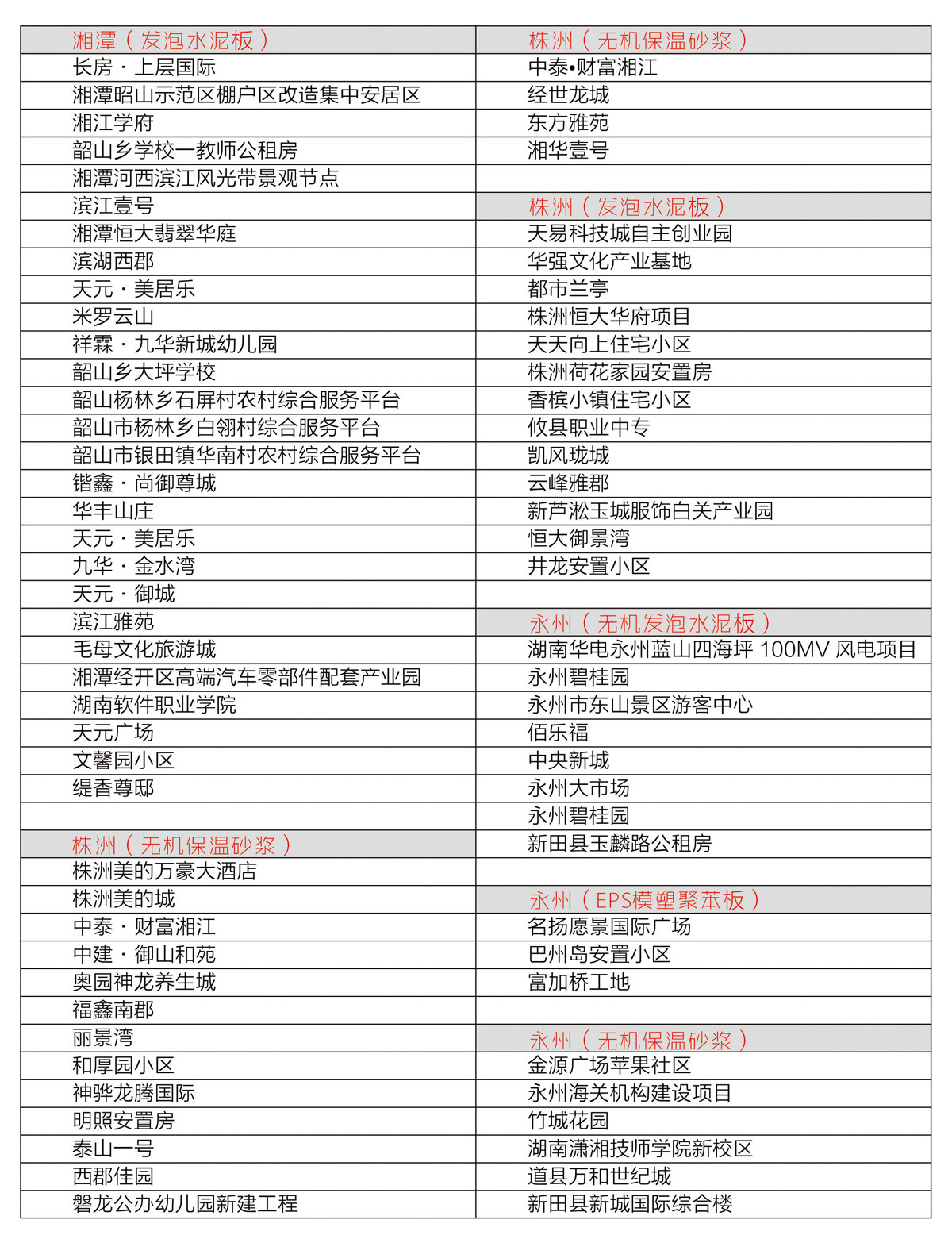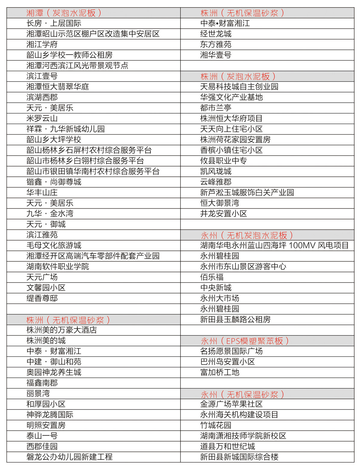 部分工程業績一覽表